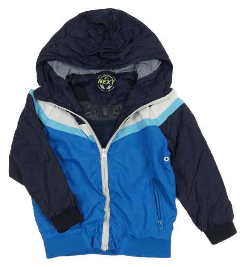 Modro-tmavomodro-biela šušťáková jarná bunda s kapucňou Next