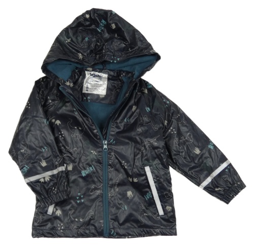 Tmavomodrá nepromokavá jarná bunda s dinosaurami a kapucňou Lupilu