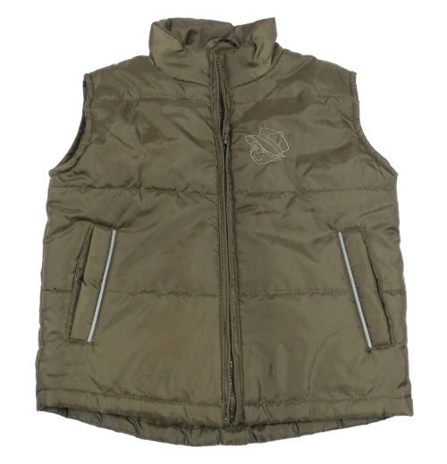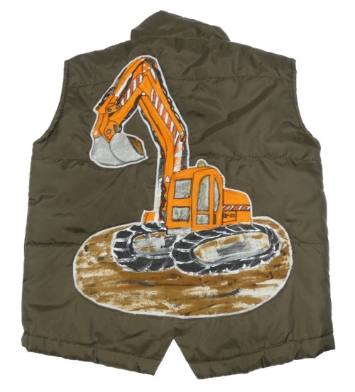 Tmavokhaki prešívaná šušťáková zateplená vesta s klukem a buldozerem Kiki&Koko