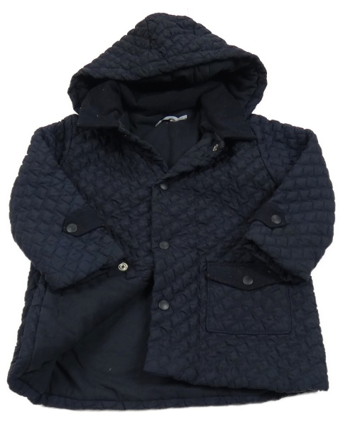 Tmavomodrá šušťáková prešívaná zateplená bunda s kapucňou
