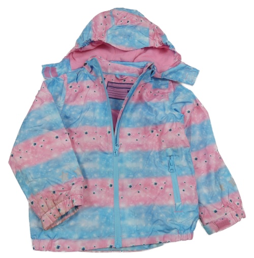 • Světlemodro-ružová pruhovaná batikovaná šušťáková jarná bunda s hviezdičkami a odopínacíá kapucňou POCOPIANO
