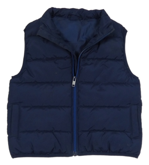 Tmavomodrá kockovaná prešívaná šušťáková zateplená vesta St. Bernard
