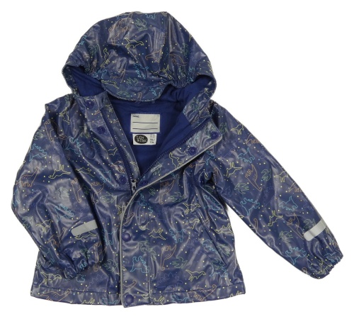 Tmavomodrá nepromokavá jarná bunda s dinosaurami a kapucňou Lily & Dan