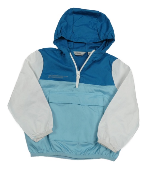 Modro-biela šušťáková vetrovka s nápisom a kapucňou Crane