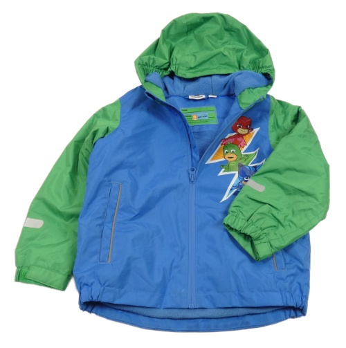 Modro-zelená šušťáková jarná bunda s PJ mask a kapucňou