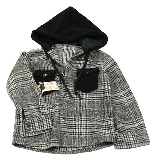 Nové - Čierno-sivo-fialová kockovaná košeľová bunda s kapucňou