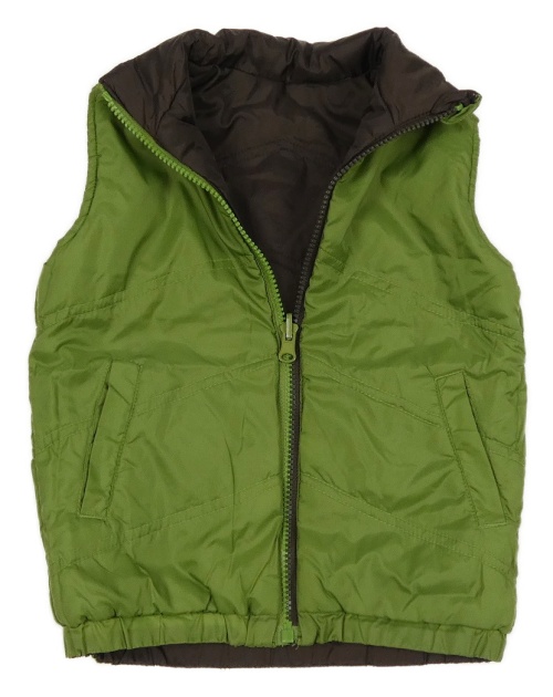 Tmavohnedá prešívaná šušťáková zateplená obojstranná vesta