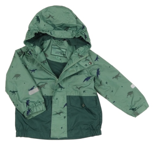 Khaki-tmavokhaki šušťáková jarná bunda s dinosaurami a kapucňou POCOPIANO