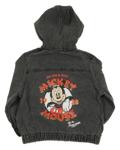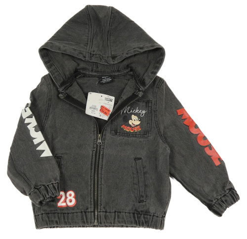 Nové - Tmavosivá rifľová bunda s Mickeym a kapucňou Primark