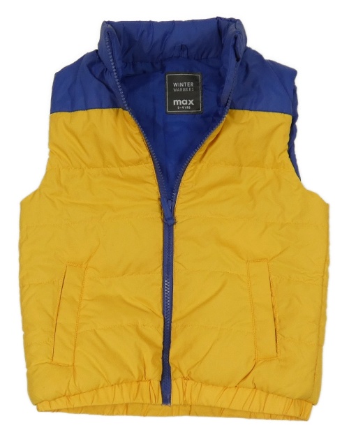 Žlto-tmavomodrá šušťáková zateplená vesta