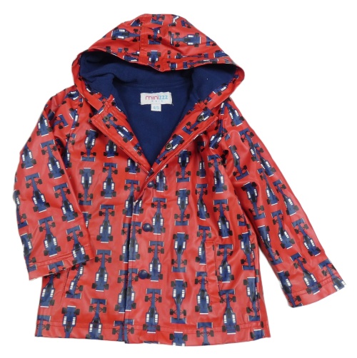 Červená nepromokavá jesenná bunda s formulami a kapucňou minizzz rain