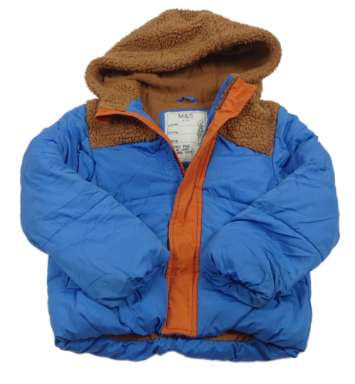 Hnedo-modrá huňato/šusťáková zimná bunda s kapucňou M&S