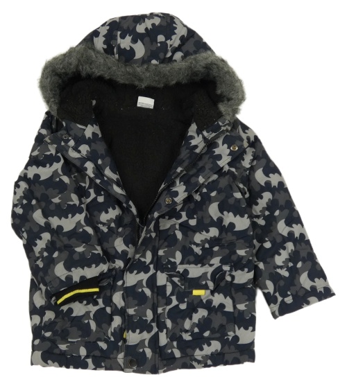 Čierno-sivá vzorovaná šušťáková zimná bunda s Batmanem a kapucňou George