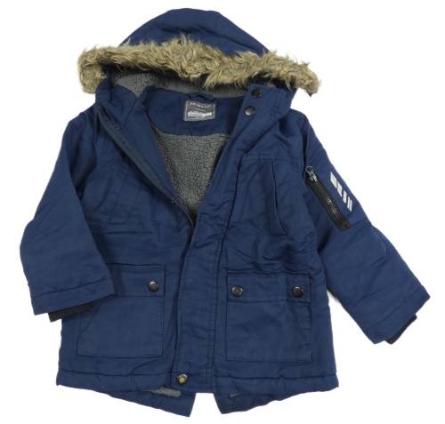 Tmavomodrá šušťáková zateplená bunda s kapucňou s kožešinou Primark
