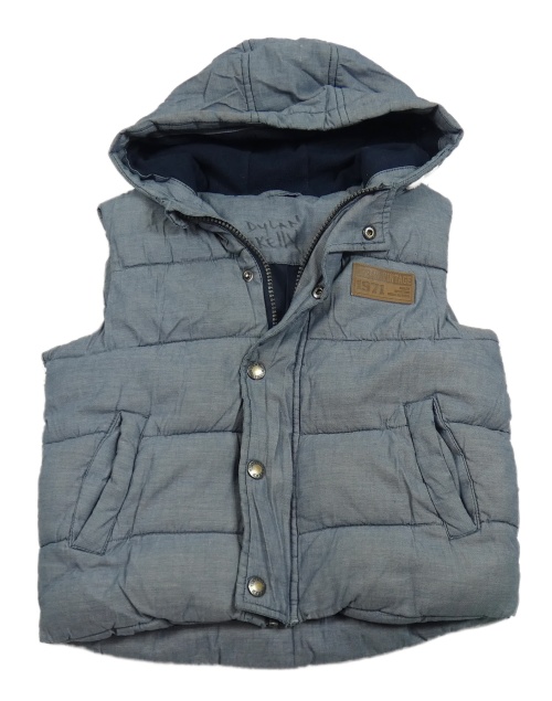 Tmavomodrá zateplená vesta s nášivkou a kapucňou