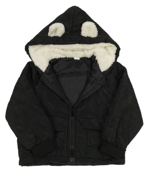 Čierna prešívaná šušťáková pod/zimní bunda s kapucňou s uškami SHEIN
