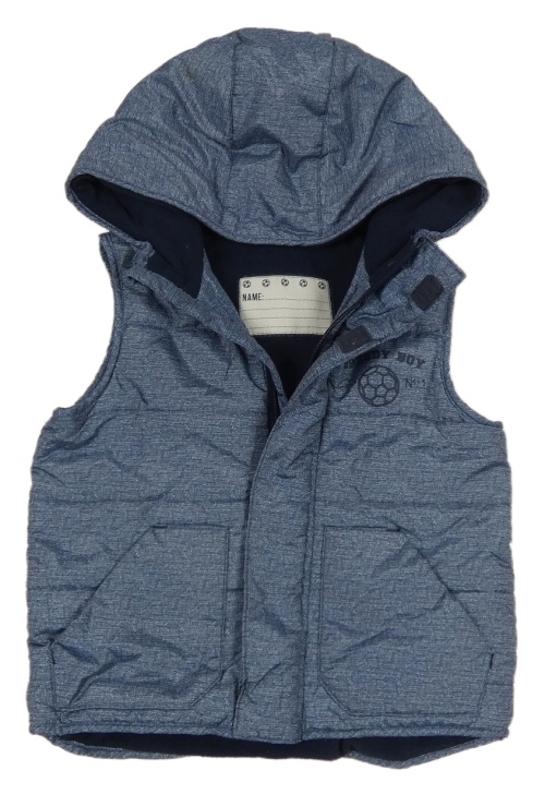 Tmavomodrá šušťáková zateplená vesta s loptou a kapucňou Topolino