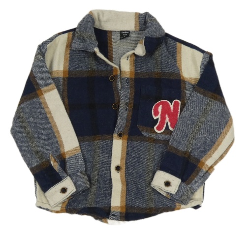 Tmavomodro-hnedo-béžová kockovaná košeľová bunda s písmenem Shein