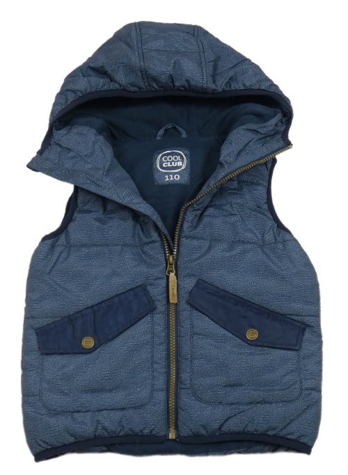 Tmavomodrá melírovaná šušťáková zateplená vesta s kapucňou