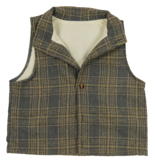 Tmavošedo-béžová kockovaná flaušová podšitá vesta SHEIN