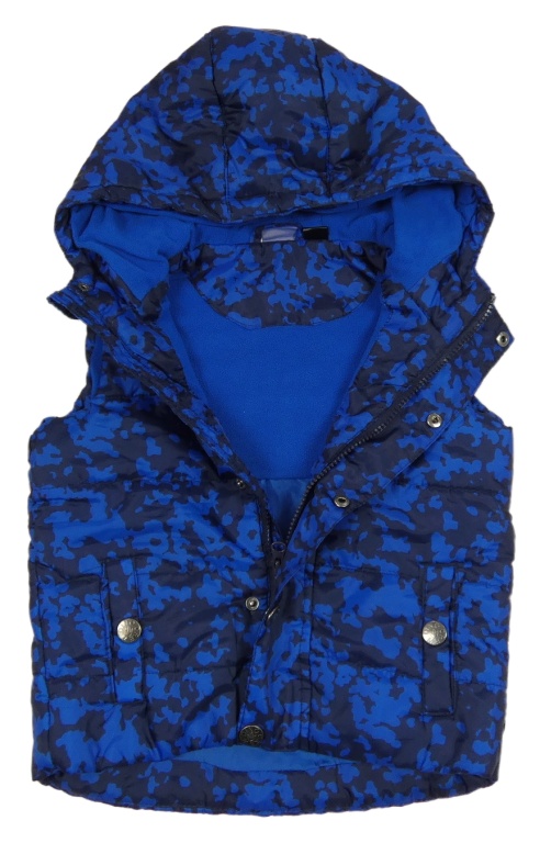 Tmavomodro-modrá šušťáková zateplená vesta s kapucňou Lupilu