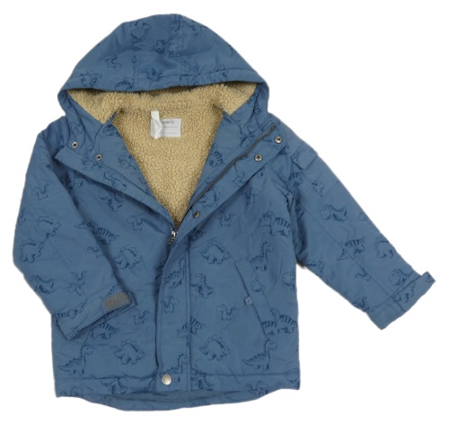 Modrá šušťáková zimná bunda s dinosaurami a kapucňou M&Co.