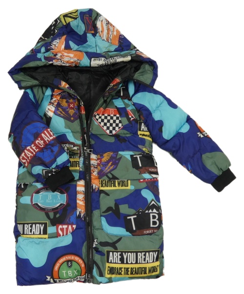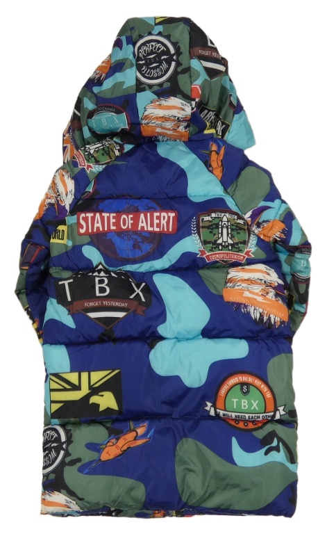 Farebný vzorovaný šušťákový prešívaný zimný kabát s kapucňou