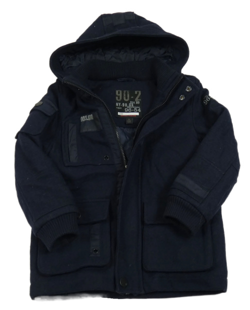 Tmavomodrý flaušový zateplený kabát s číslom a kapucňou Next