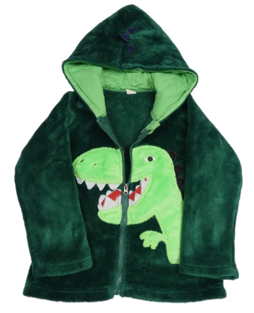 Tmavozelená plyšová bunda s dinem a kapucňou