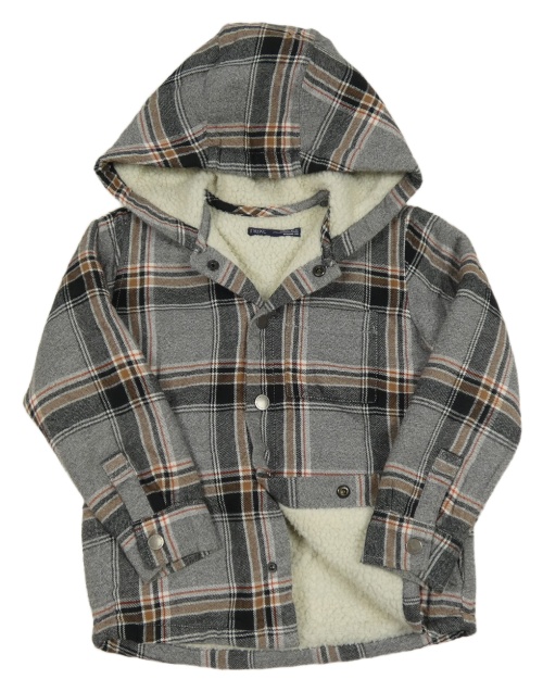 Sivo-čierno-hnedá kockovaná melírovaná zateplená košeľová bunda s kapucňou Next