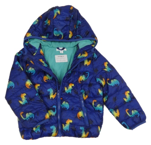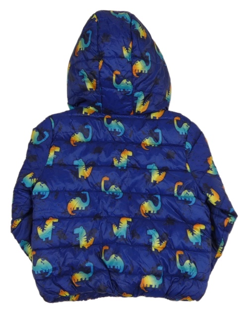 Tmavomodrá prešívaná šušťáková pod/zimní bunda s dinosaurami a kapucňou M&Co