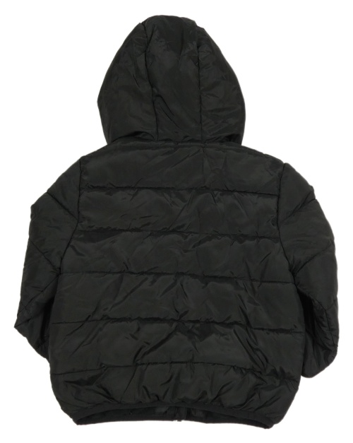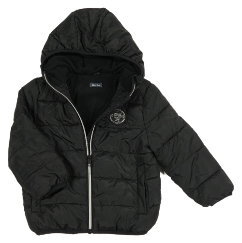 Čierna šušťáková prešívaná zateplená bunda s nášivkou a kapucňou