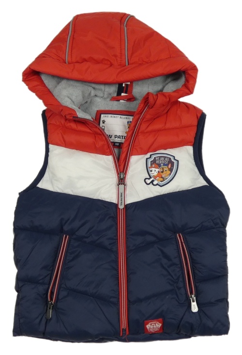 • Červeno-bielo-tmavomodrá šušťáková zateplená vesta s kapucí - Tlapková Patrola C&A