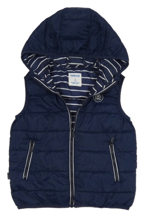 Tmavomodrá šušťáková zateplená vesta s kapucňou Mayoral