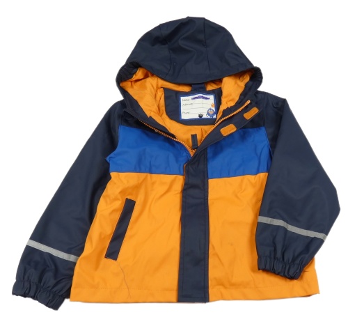 Tmavomodro-cobaltovoě modro-oranžová nepromokavá jarná bunda s kapucňou Kiki&Koko