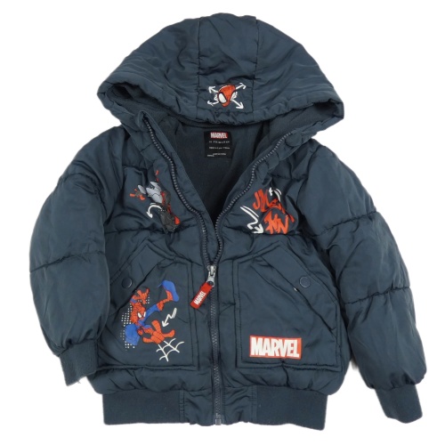 Antracitová šušťáková zimná bunda so Spidermany a kapucňou Primark