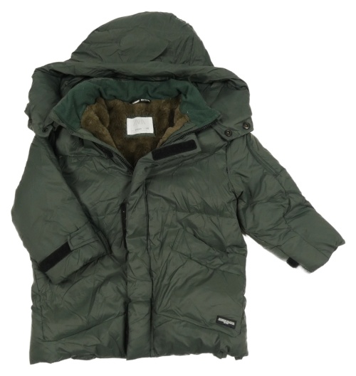Khaki šušťákový zimný kabát s kapucňou Zara