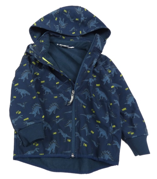 Tmavomodrá softhellová bunda s dinosaurami a odopínacíá kapucňou H&M
