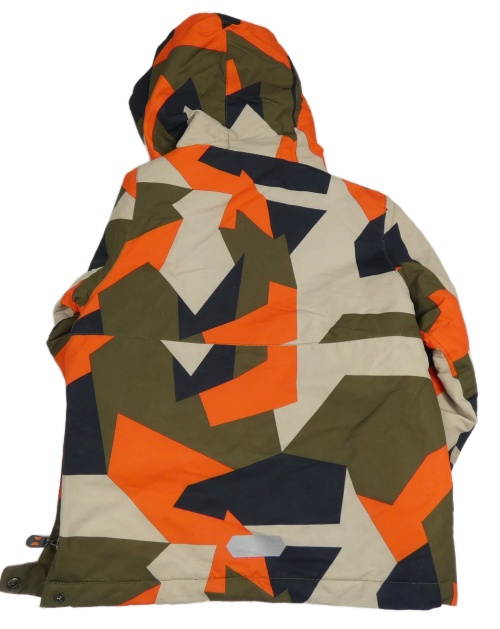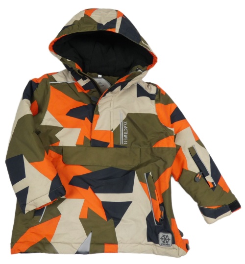 Kaki-tmavooranžovo-béžový vzorovaná šušťáková zimná bunda s kapucňou Topolino
