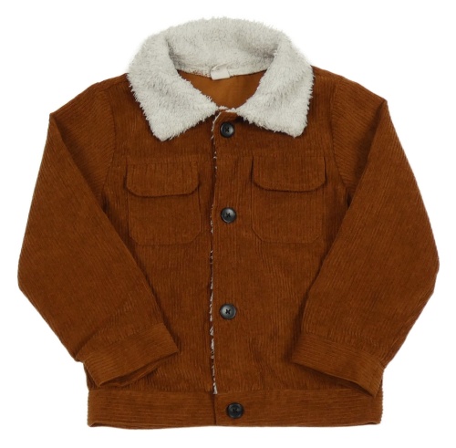 Hnedá rebrovaná zamatová košeľová bunda s chlpatým golierom Shein