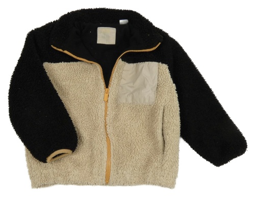 Béžovo-čierna huňatá podšitá bunda ZARA