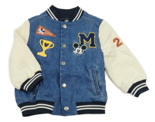 Modrý riflový bomber s Mickey a pruhmi a smotanovymi teplákovymi rukávy PRIMARK