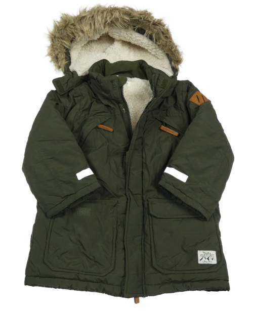 Khaki šušťáková zimná bunda s kapucňou s kožešinou H&M