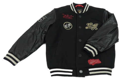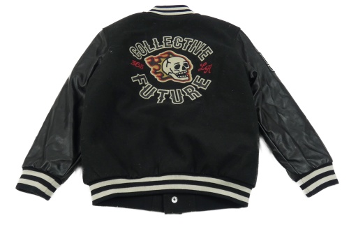 Čierna flaušová baseballová zateplená bunda s koženkovymi rukávy a nápisom Next