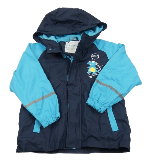 Tmavomodro-modrá nepromokavá jarná bunda s dinosaurom a kapucňou Kiki&Koko