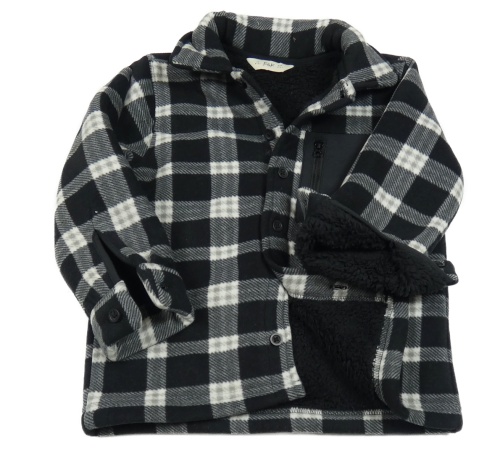Čierno-biela kockovaná fleecová zateplená košeľová bunda F&F