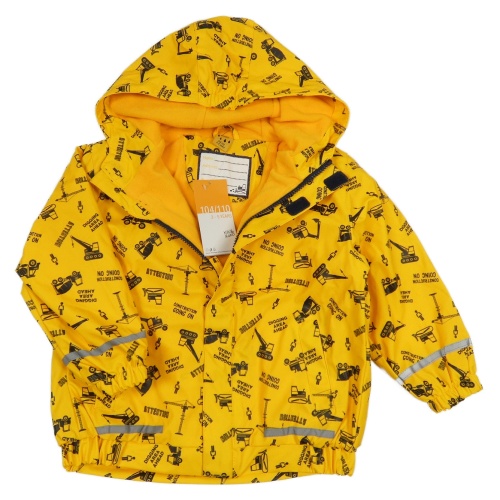 Žltá nepromokavá jarná bunda s bagrami a kapucňou Kiki&Koko