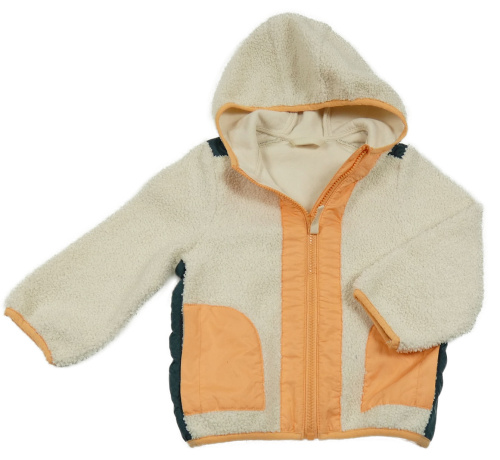 Krémovo-oranžovo-zelená huňato/šusťáková podšitá bunda s kapucňou S. Oliver