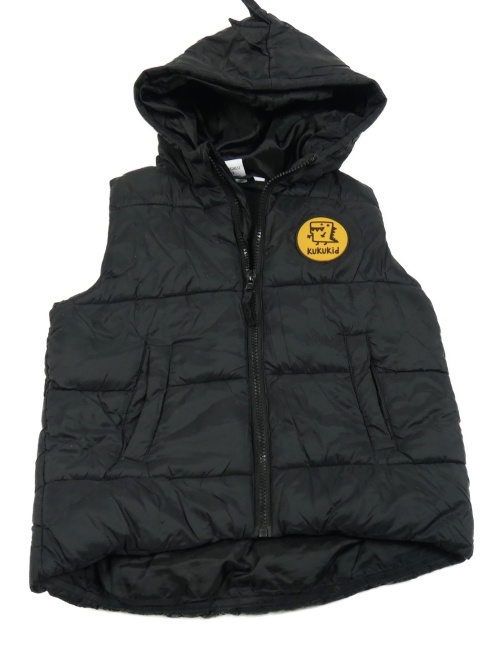 Čierna šušťáková zateplená vesta s dinem a kapucňou s ostny