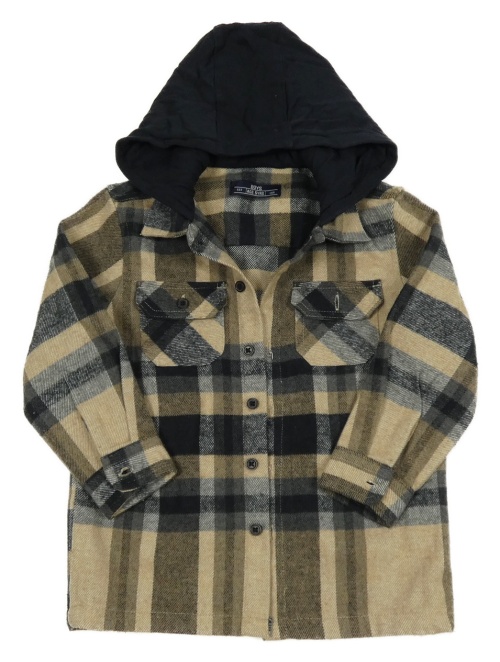 Béžovo-čierna kockovaná košeľová bunda s kapucňou Matalan